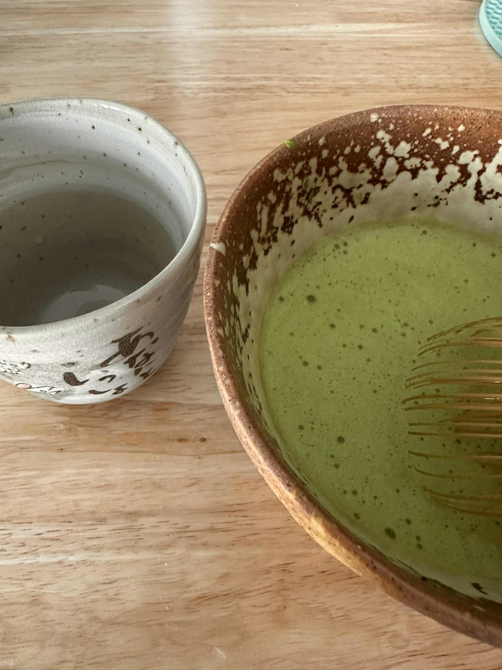 (Hot) then pour the whisk Matcha over.